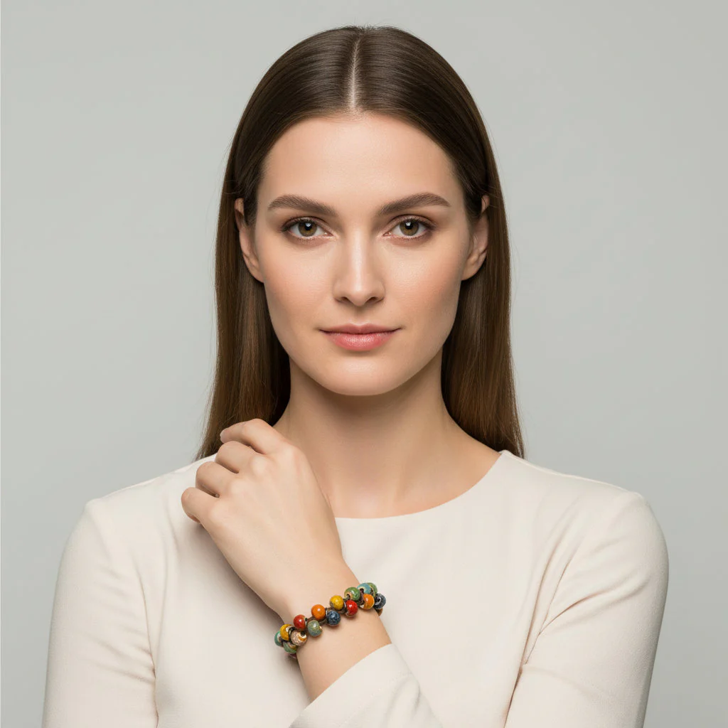 Vintage Multicolor Ceramic Bead Bracelet Fixed Length 18cm for Small Wrists